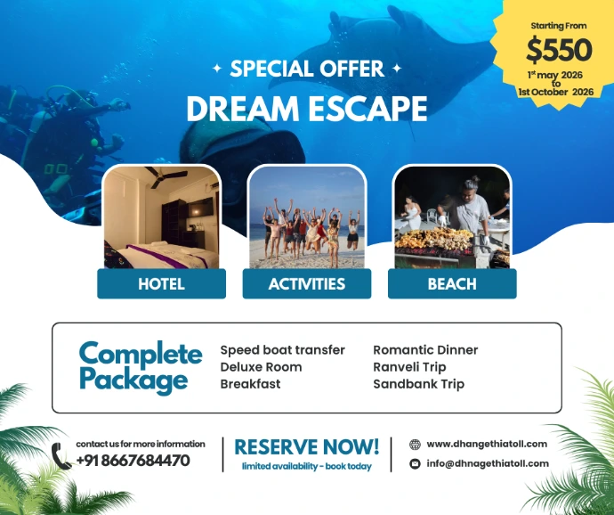 Starting from the moment you arrive at the airport, we will provide seamless pickup services, ensuring a smooth transition to your getaway. Enjoy all the exciting activities included in your package, and rest assured that we’ll take care of your return to the airport at the end of your stay.